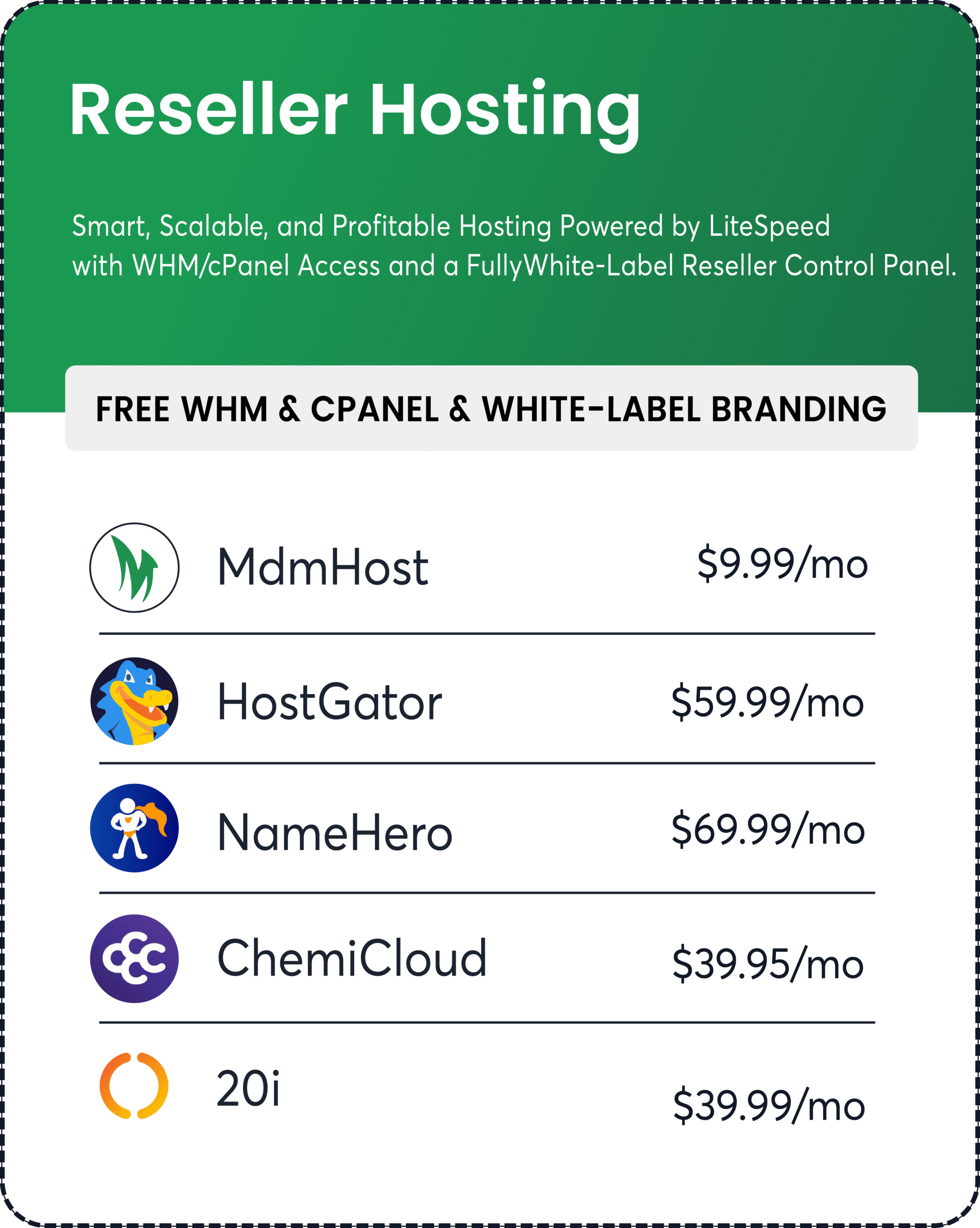 Managed reseller hosting is a hosting solution that allows you to sell hosting plans under your own brand while your provider manages the technical side , server updates, security, monitoring, and performance optimization. You get WHM access to create cPanel accounts for your clients, but you don’t need to worry about maintaining or troubleshooting the server yourself.